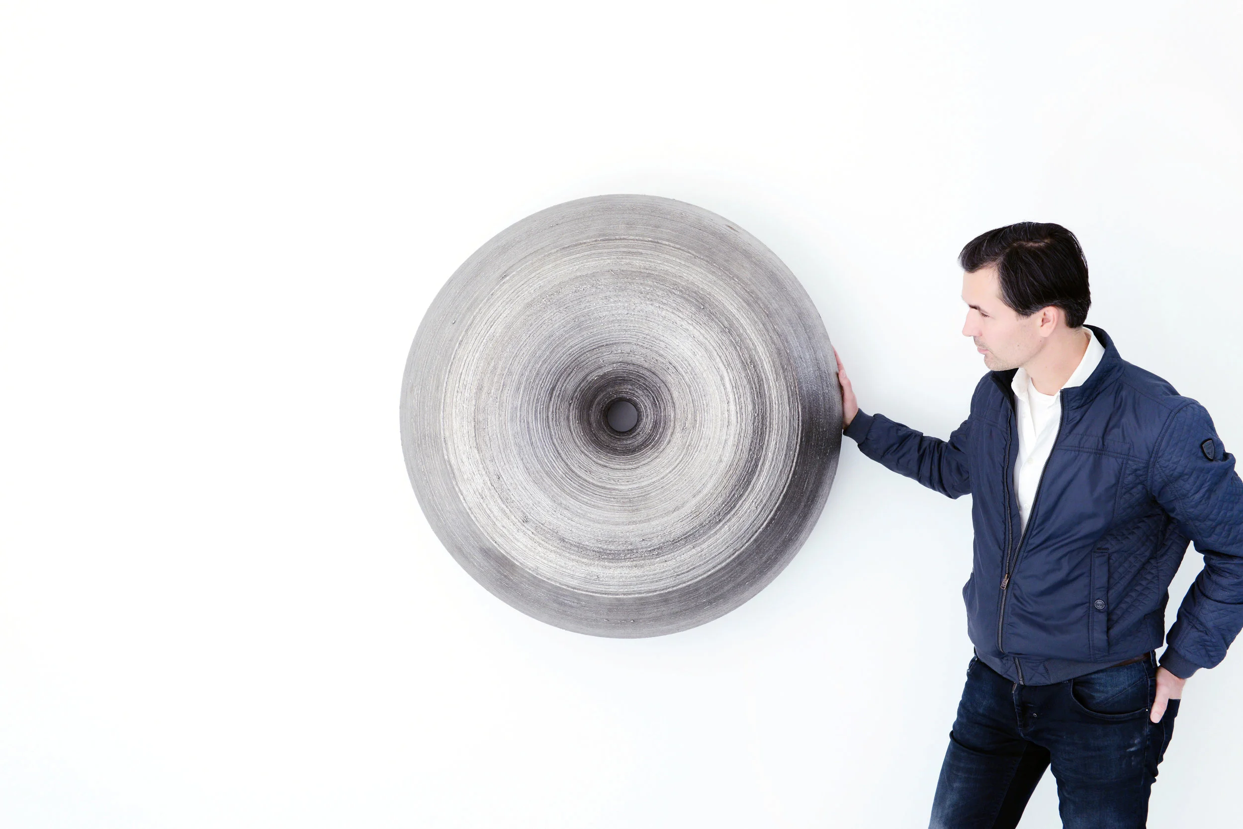 Description: In 2009, Tomáš was approached by Ambra Medda (co-founder of Design Miami and founder of L'ArcoBaleno) and her team to participate in Craft/Punk event commissioned by FENDI fashion house. The main theme was craft. Studio Libertiny undertook to explore the craft of welding in a production of time consuming production process. The semi-robotic system was devised to craft an object of multitudes of layers of welded stainless steel. The result was a light and extremely strong form in a shape of a void. Texture of erratic nature was in strong contradiction to the shape, industrial vs. natural.